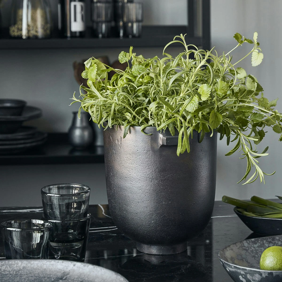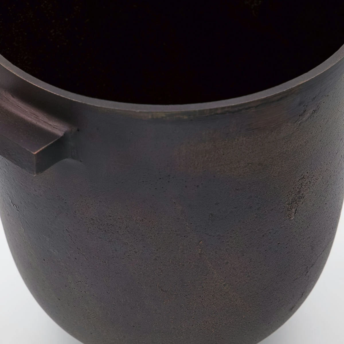 Der Topf von House Doctor hat eine dunkelbraune Farbe aus Aluminium mit einem eleganten Look in zeitlosem Stil. Er hat zwei Griffe an den Seiten mit einem guten Grip für das einfache Herumbewegen im Haus. Er hat eine schützende Unterseite aus Filz perfekt um Kratzer zu vermeiden. Es stehen verschiedene Größen zur Auswahl.