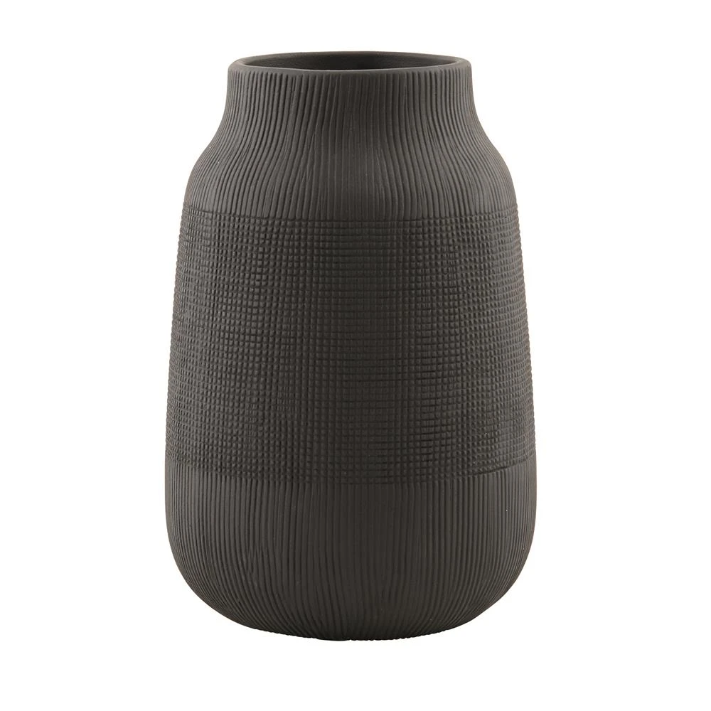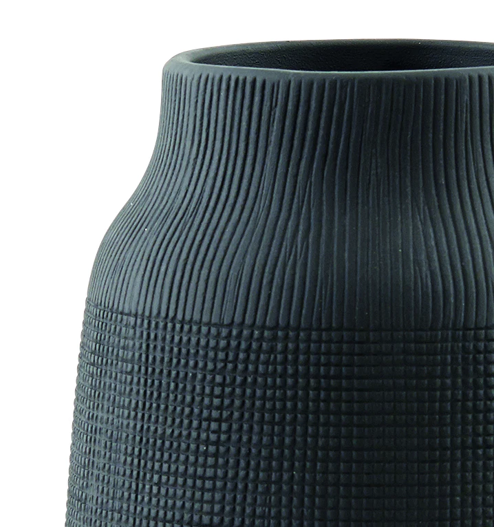 Die House Doctor Vase namens „Groove“ lebt von einer kleingemusterten Oberflächenstruktur im Handmade-Look.
