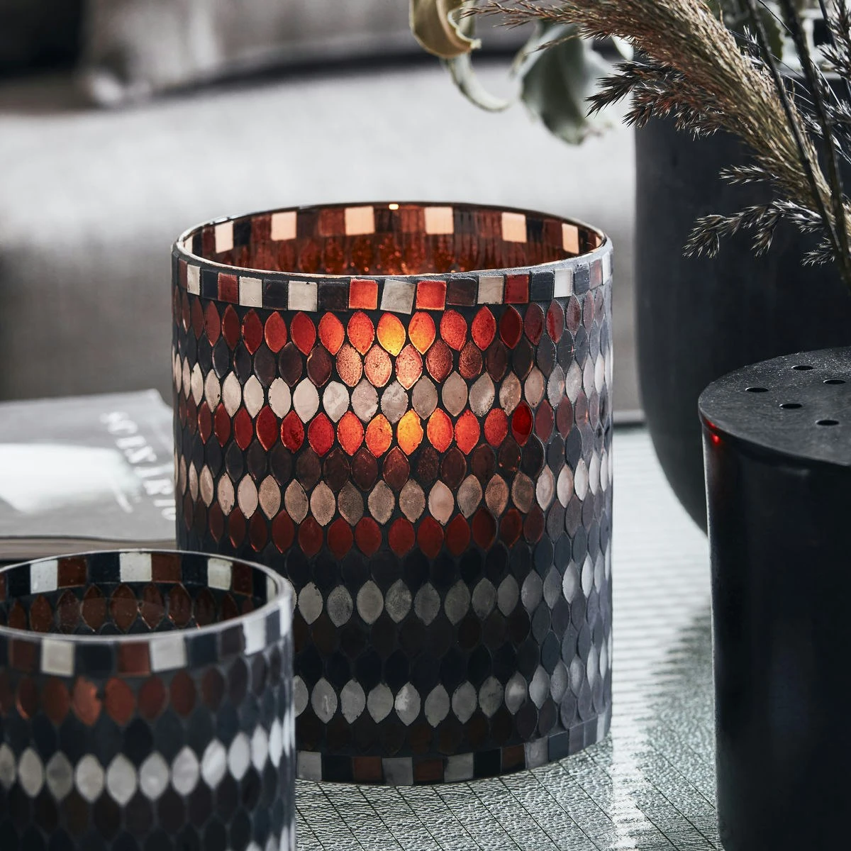 Der Kerzenständer von House Doctor hat ein handgefertigtes Design aus Glas mit einem dekorativen Mosaikmuster und erdigen Farben um ein subtiles und dekoratives Licht zu liefern. Das Produkt ist schön wie es ist und du kannst mehrere Exemplare auch miteinander kombinieren.