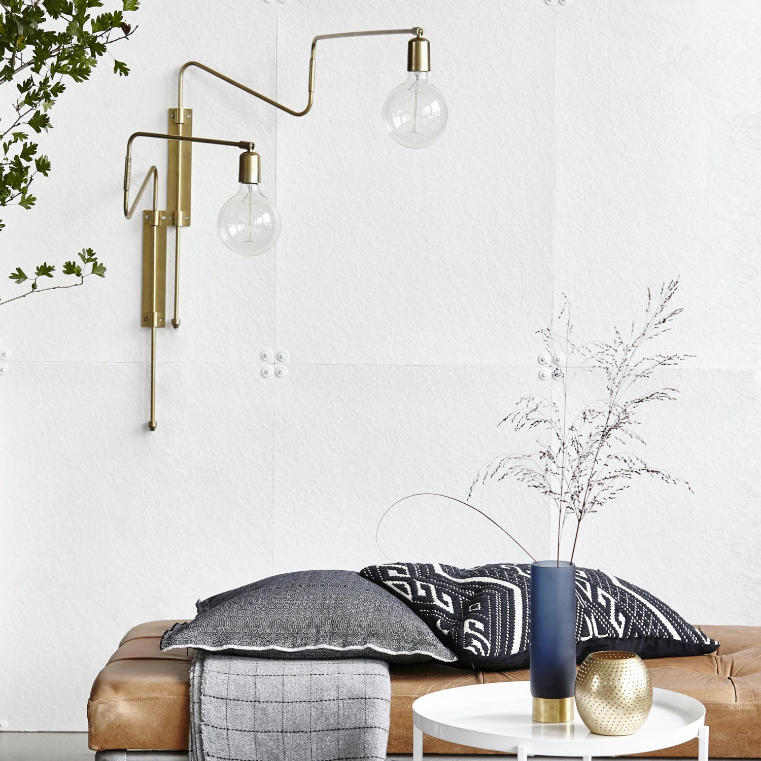 Swing nennt sich diese geschwungene Wandleuchte in Messing-Optik, die mit verschieden langen Lampenarmen bestellbar ist. Dieses Designstück der dänischen Marke House Doctor ist höchst flexibel – sowohl der Lampenarm, als auch die Ausrichtung der Fassung ist justierbar, was diese Lampe funktionell einsetzbar macht. Eine Wandleuchte, die den Spagat zwischen Industriedesign und Stilreinheit mit Bravour schafft!